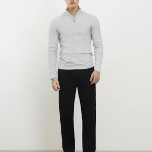 White Slim Fit Stripe Zip Polo Shirt