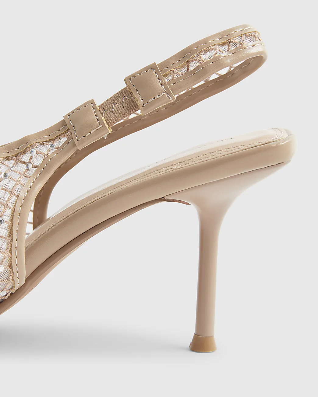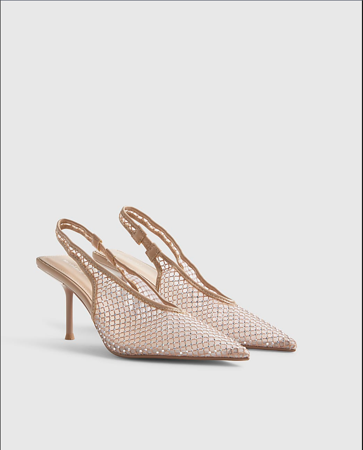 Refined and effortlessly elegant, these Linglocker slingback court heels are designed to elevate any look. Featuring a sleek pointed toe and delicate mesh fabric, they are beautifully finished with shimmering diamante embellishment for a touch of understated glamour. The slingback strap ensures a secure and comfortable fit, while the stiletto heel adds just the right amount of height for all-day wear.