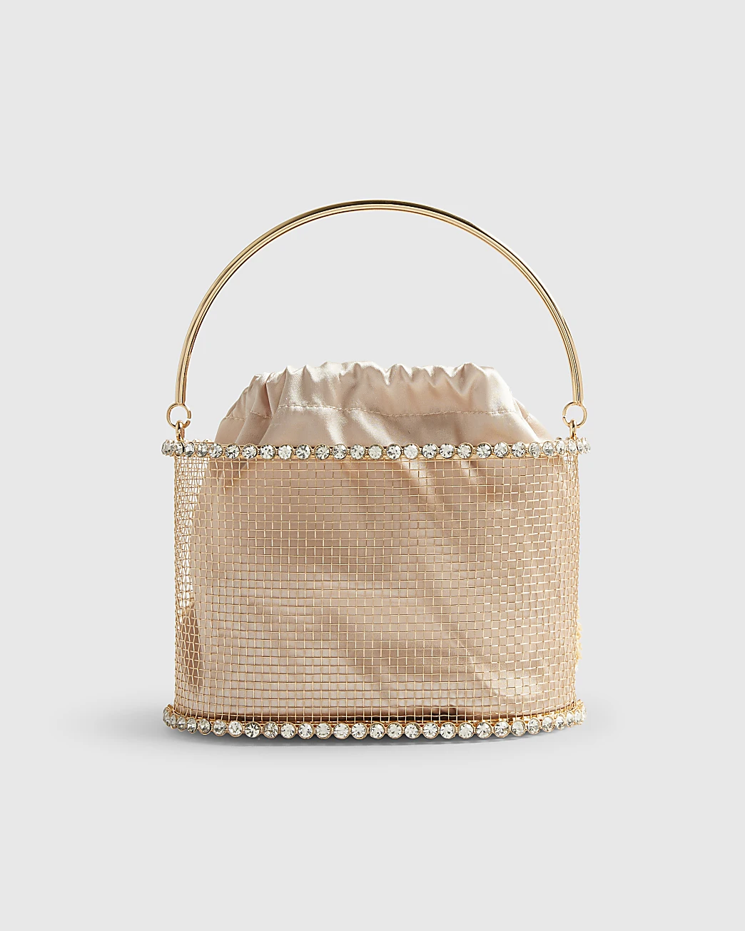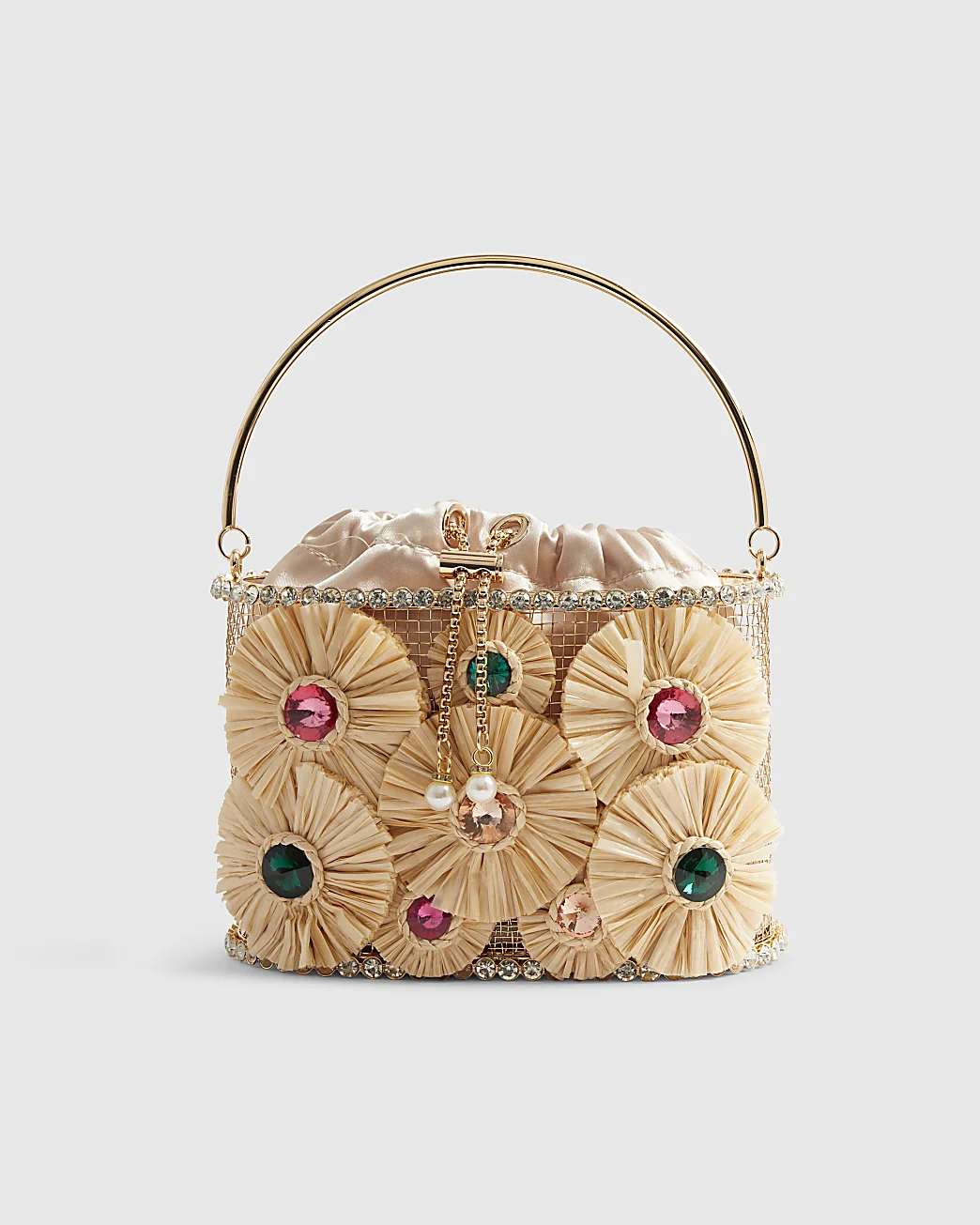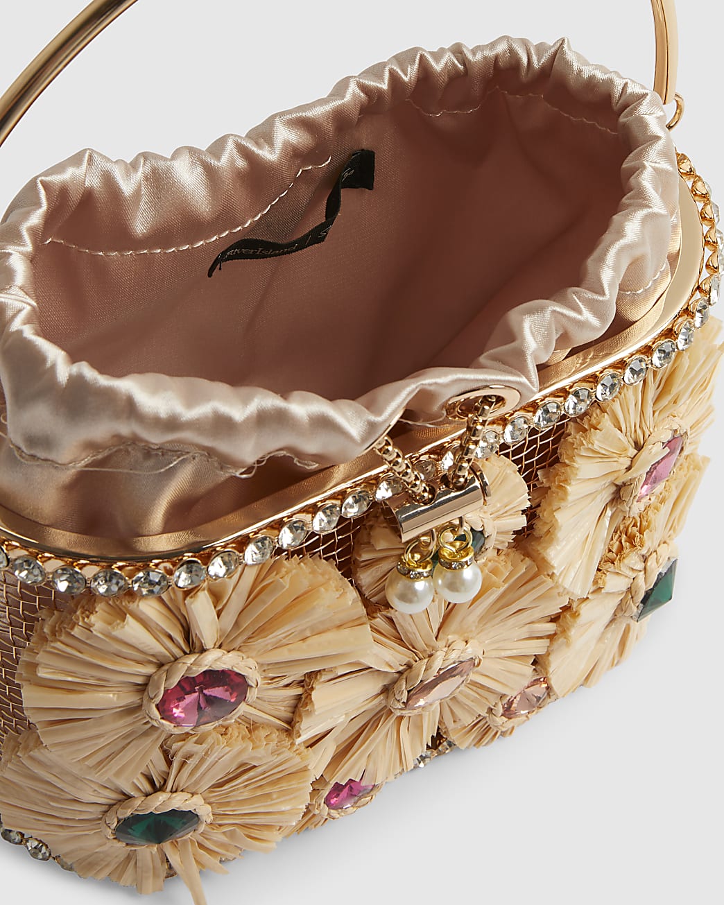 Linglocker Beige Gem Raffia Flower Basket Bag