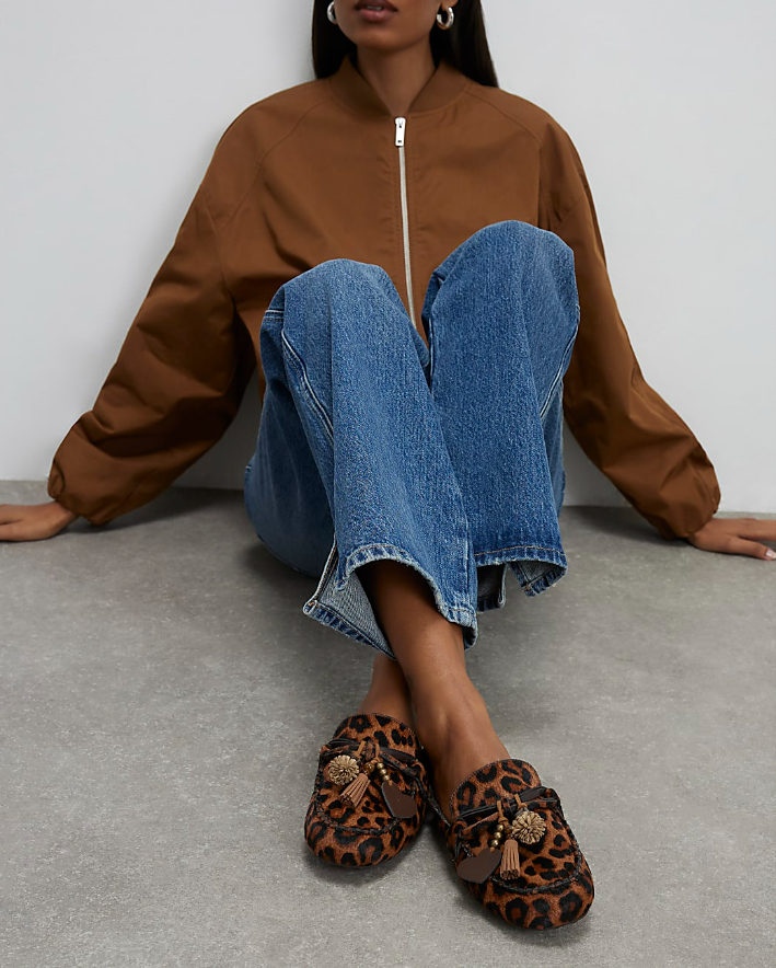 Beige Leather hair on Leopard Print Loafers
