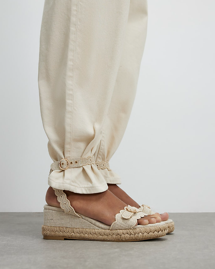 Linglocker Beige Scallop Trim Wedges