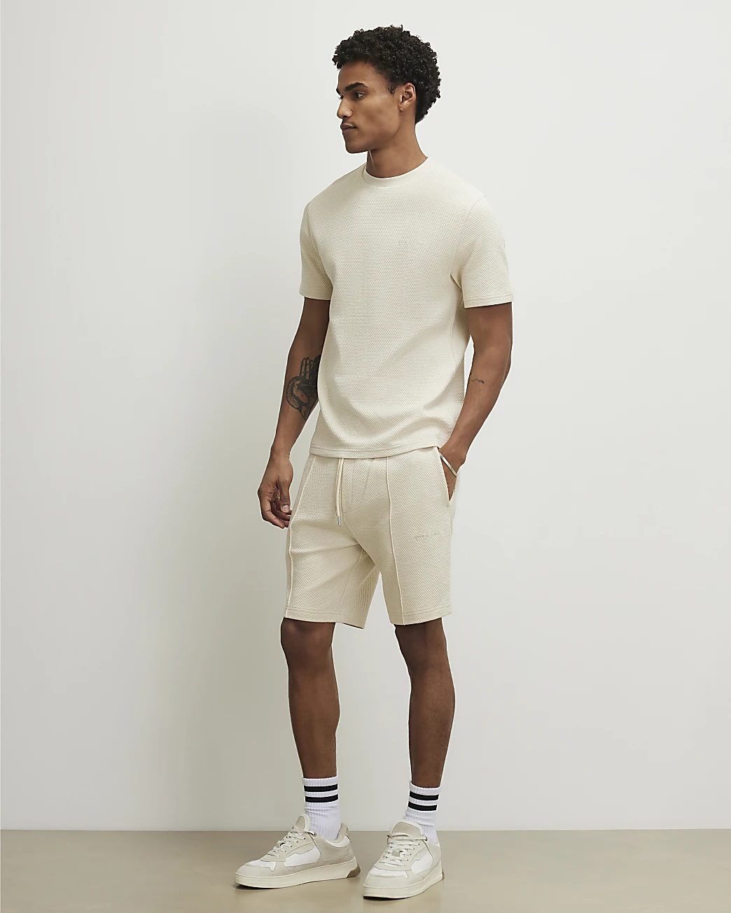 Beige Slim Fit Textured T-Shirt & Shorts Set