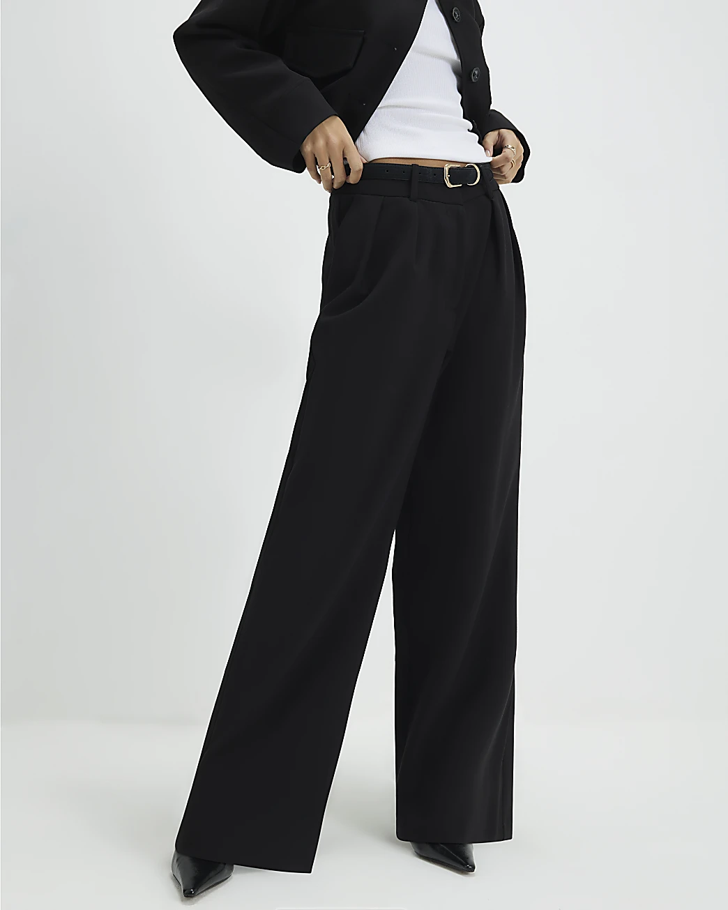 Linglocker Black Belted Wide Leg Trousers