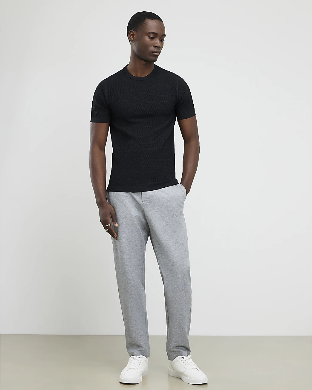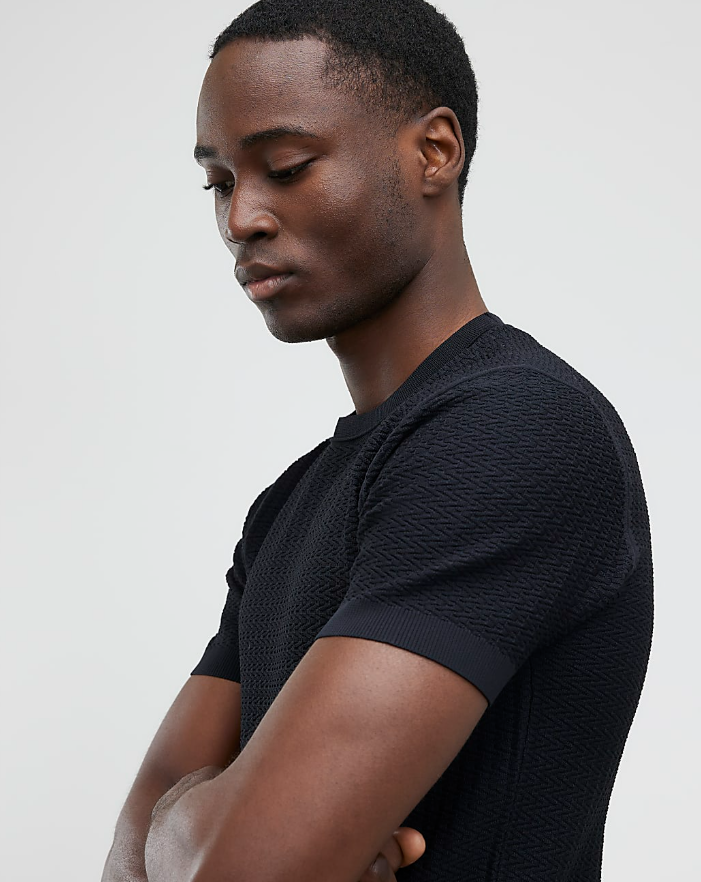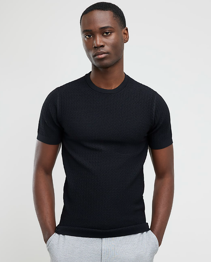 Black Muscle Fit Textured Knit T-shirt