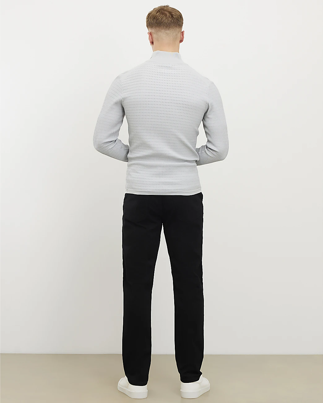 - Model height: 185 cm / 6’1″