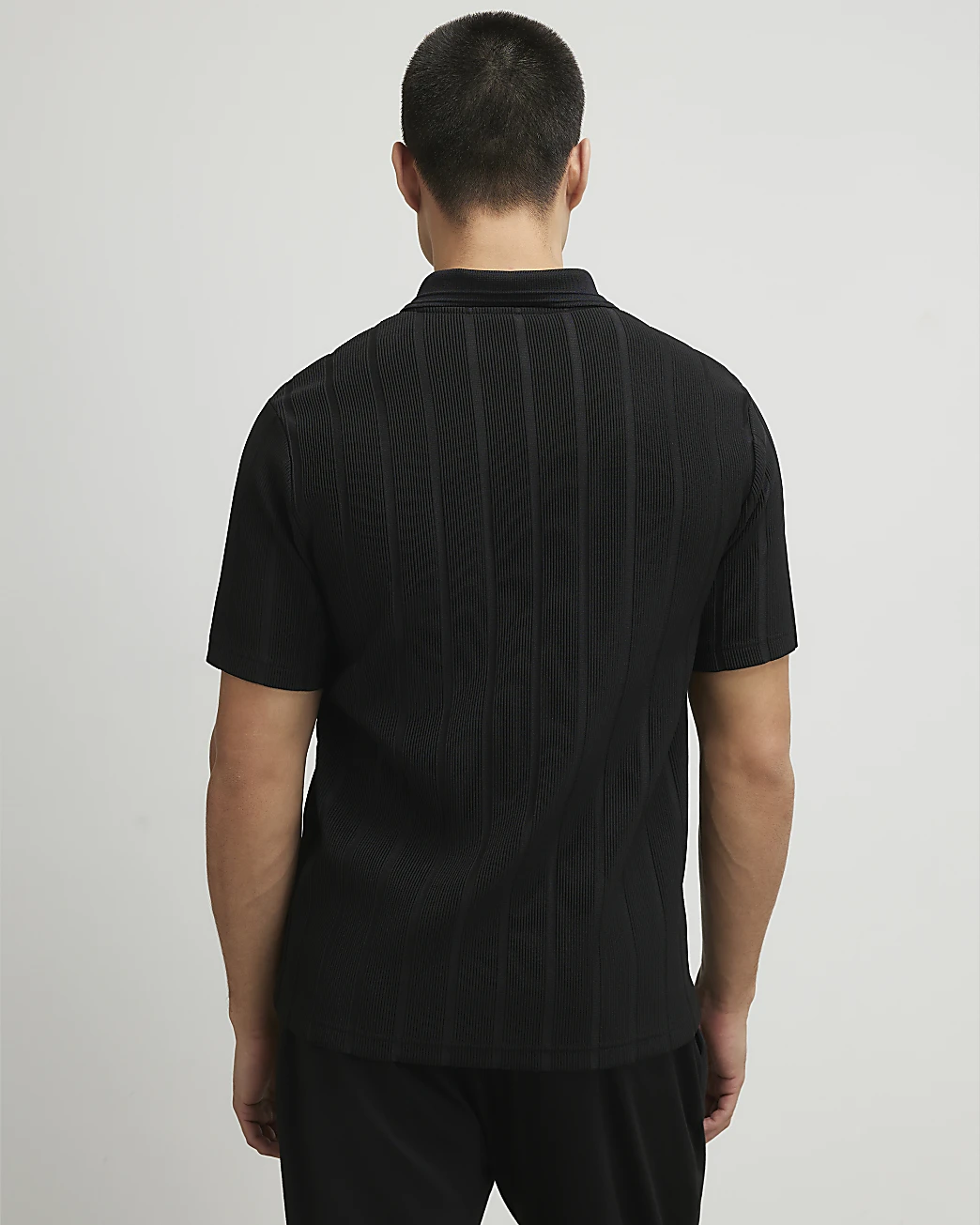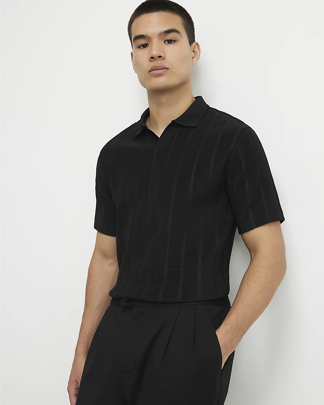 - Open neck polo collar for a modern touch