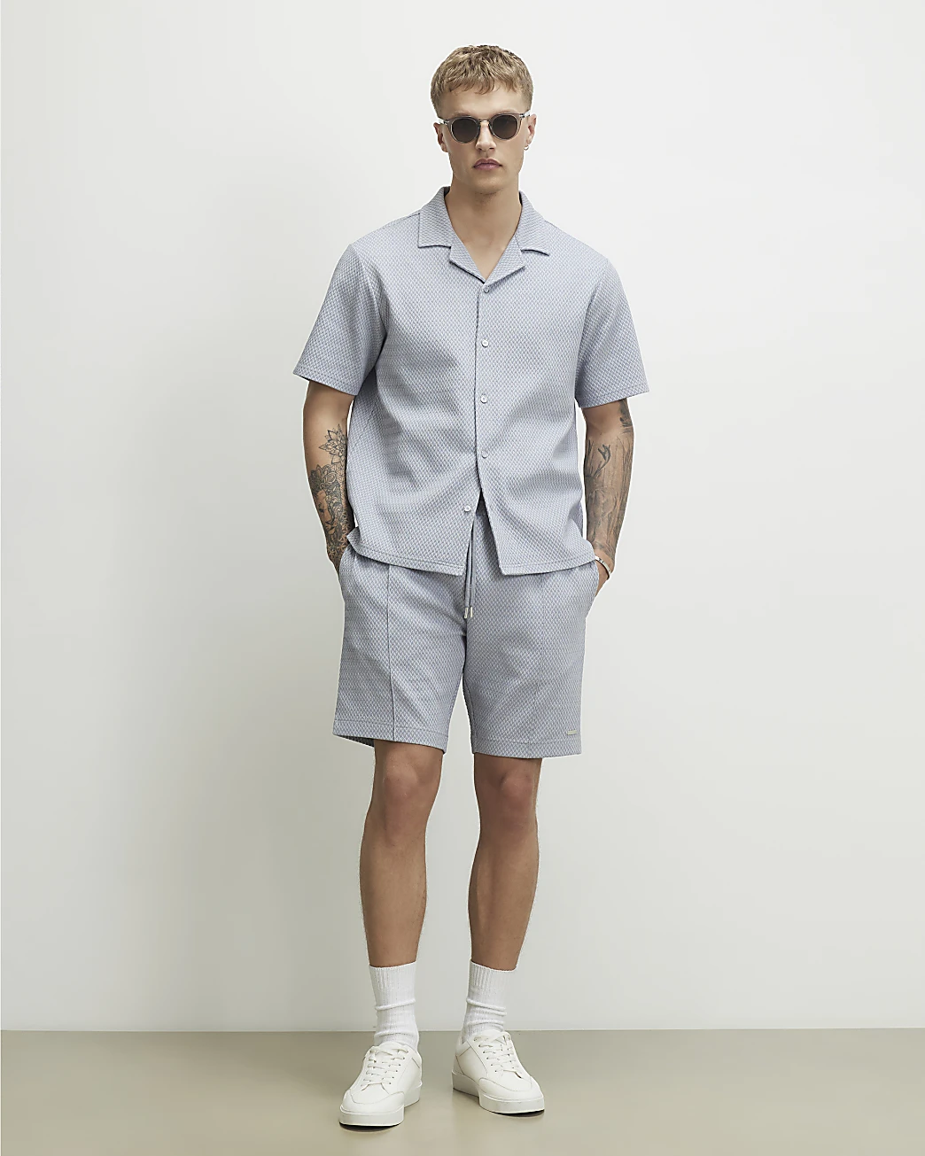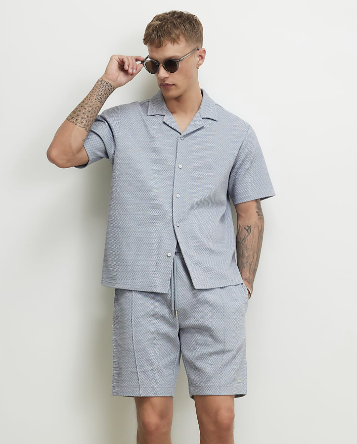 Blue Regular Fit Triangle Jacquard Shirt
