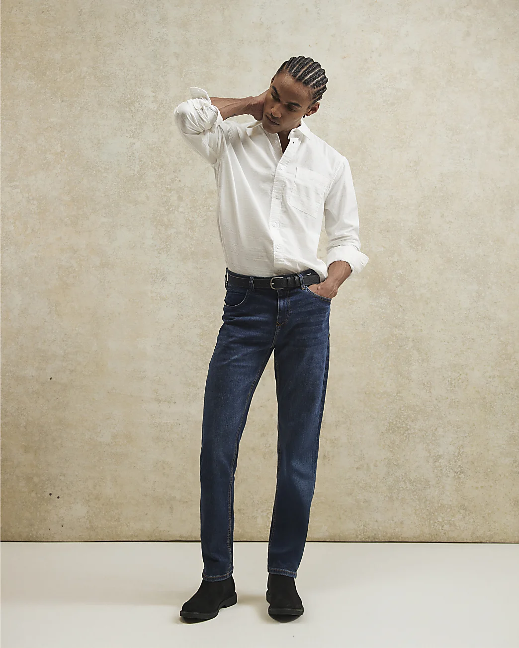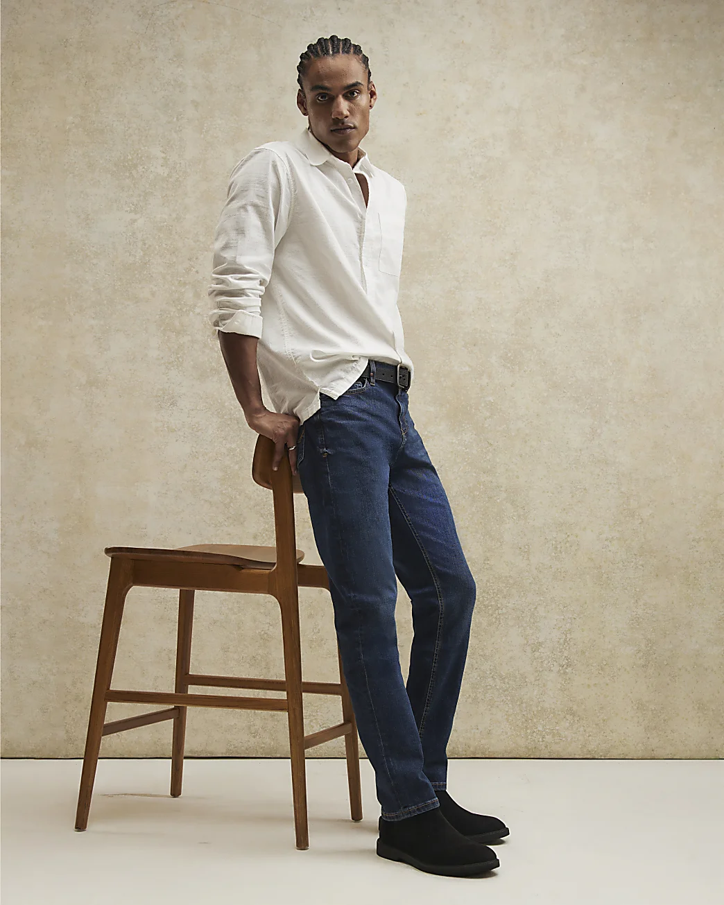 Our slim jeans are designed with comfort and style in mind, featuring a comfort stretch denim that offers the authentic look of classic jeans with added flexibility for all-day wear. The fit is looser through the thigh with a slight taper from the knee down, designed to sit just above your shoes for a clean finish.