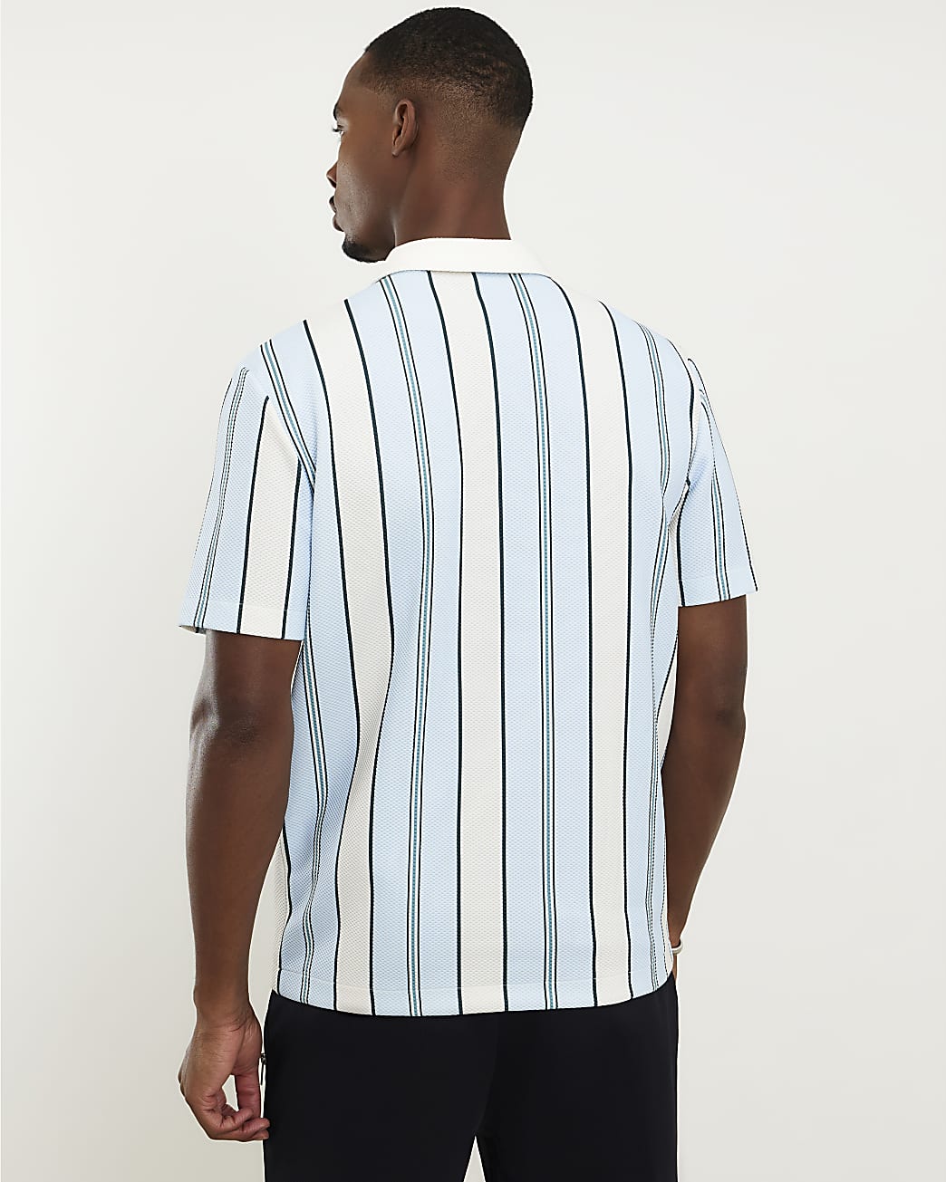 Designed by Linglocker, this textured stripe polo shirt combines contemporary styling with a sleek fit, making it a versatile choice for both casual and smart occasions.