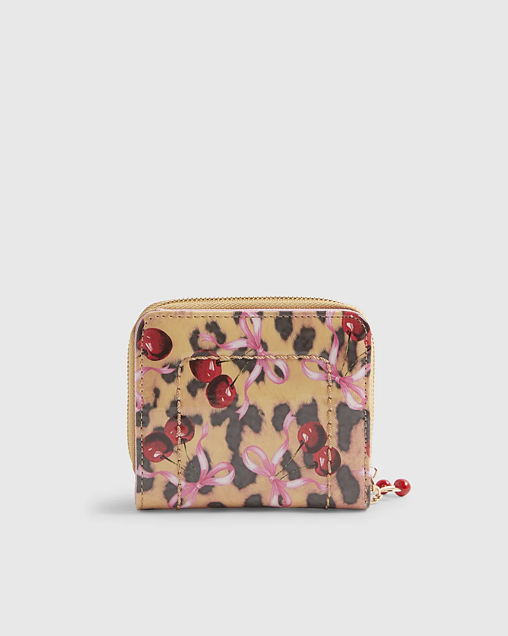 Linglocker Brown Leopard Cherry Patent Mini Purse