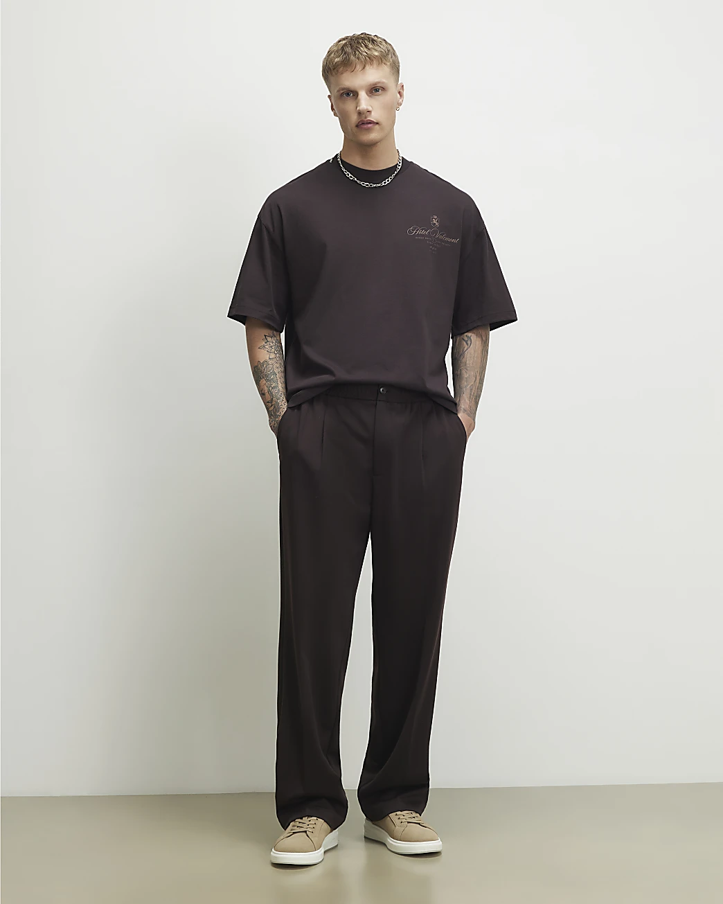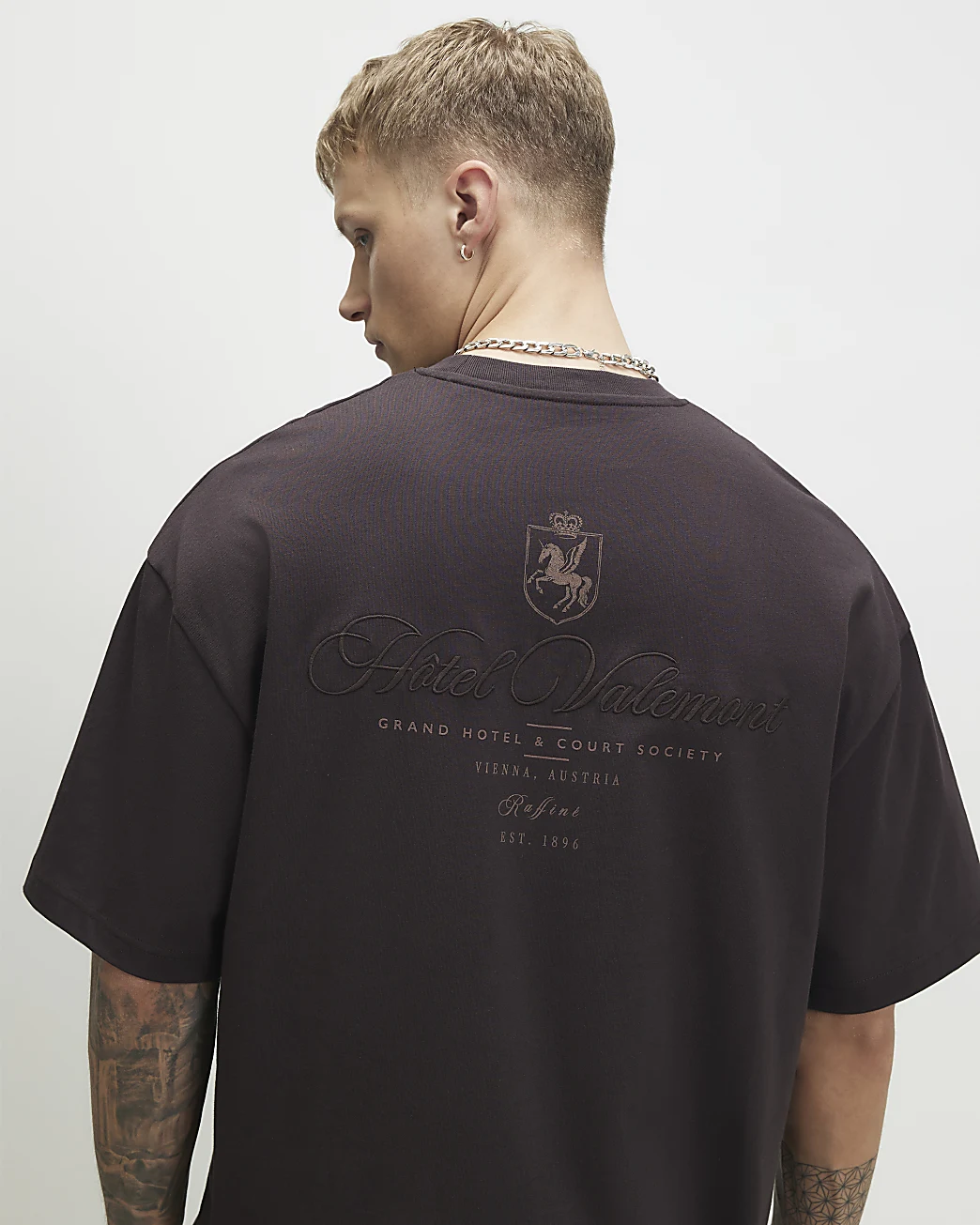 Linglocker Brown Oversized Fit Graphic T-Shirt