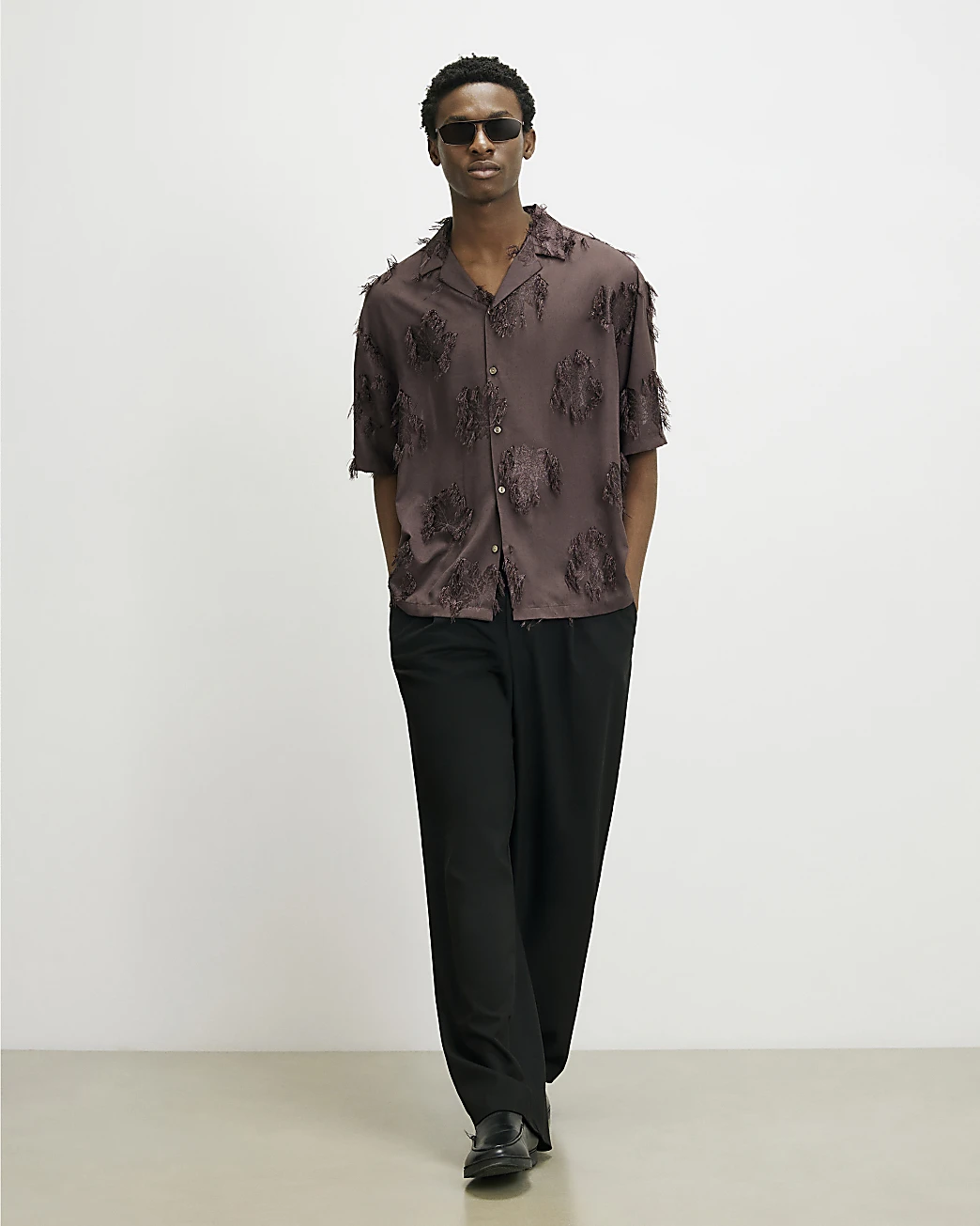 Brown RI Studio 3D Floral Shirt