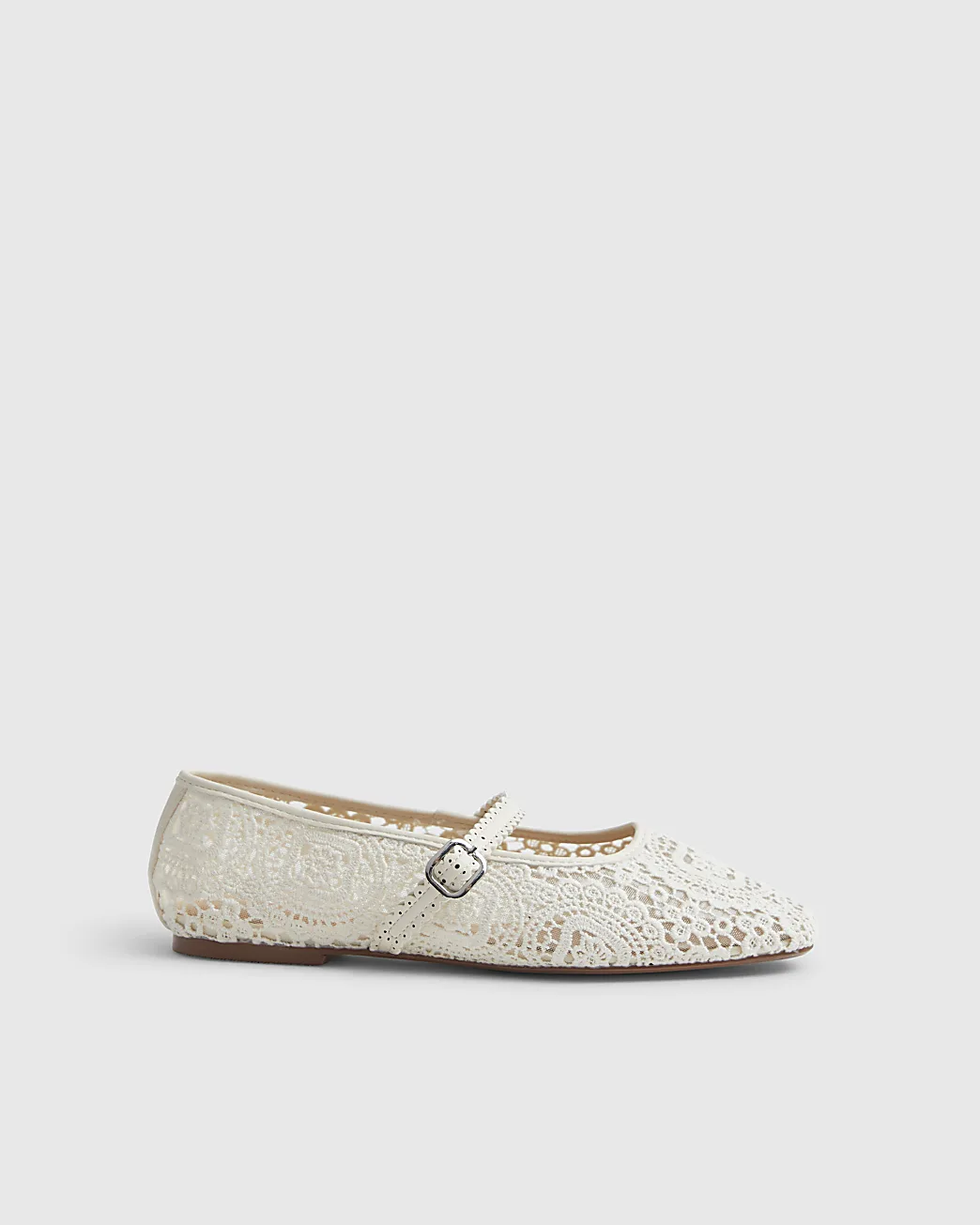 Linglocker Cream Crochet Strapped Ballet Pumps