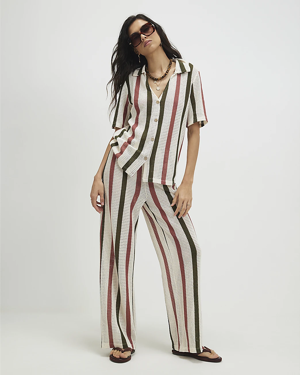 Effortlessly relaxed with a refined finish, these Linglocker trousers are a versatile addition to your warm-weather wardrobe. Crafted from breathable crochet fabric with a subtle stripe design, they feature a comfortable elasticated waistband and a flattering wide-leg silhouette that moves beautifully with every step.