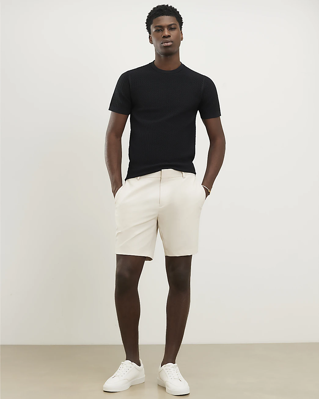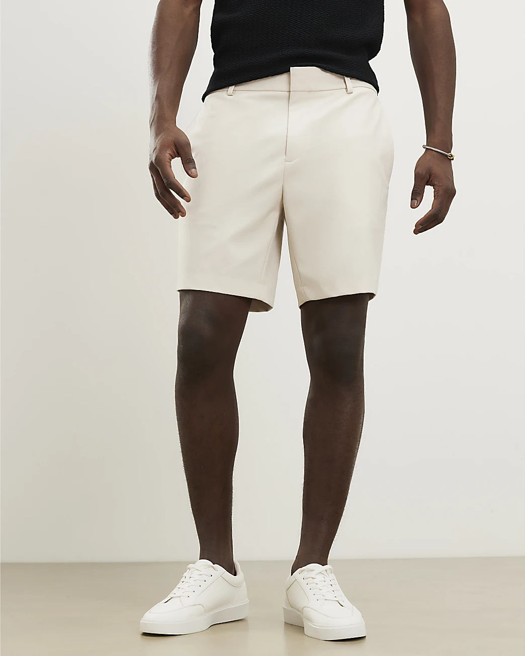 Designed for a sleek, modern look, these Linglocker skinny fit shorts combine sharp tailoring with enhanced comfort. Crafted from a high-performance stretch fabric, they offer a close, streamlined fit while allowing ease of movement. The elasticated waistband ensures flexibility, complemented by a clean concealed fastening for a refined finish. Functional details like side zipped pockets, back slip pockets, and belt loops add practicality without compromising on style. Perfect for smart-casual dressing, summer outings, and elevated everyday wear.