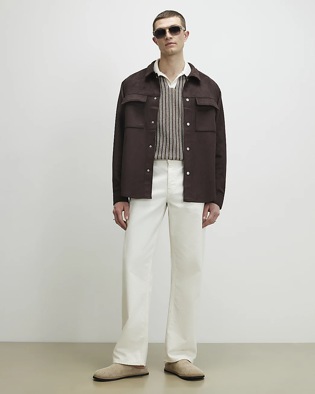 - Classic collared neckline with open neck style