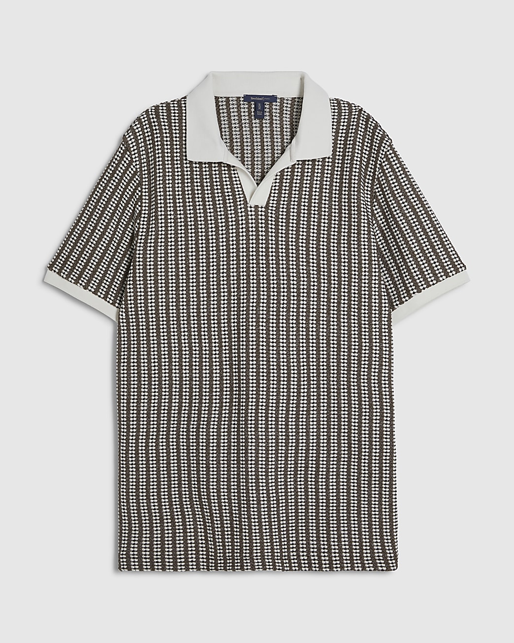Linglocker Khaki Slim Open Neck Crochet Polo Shirt