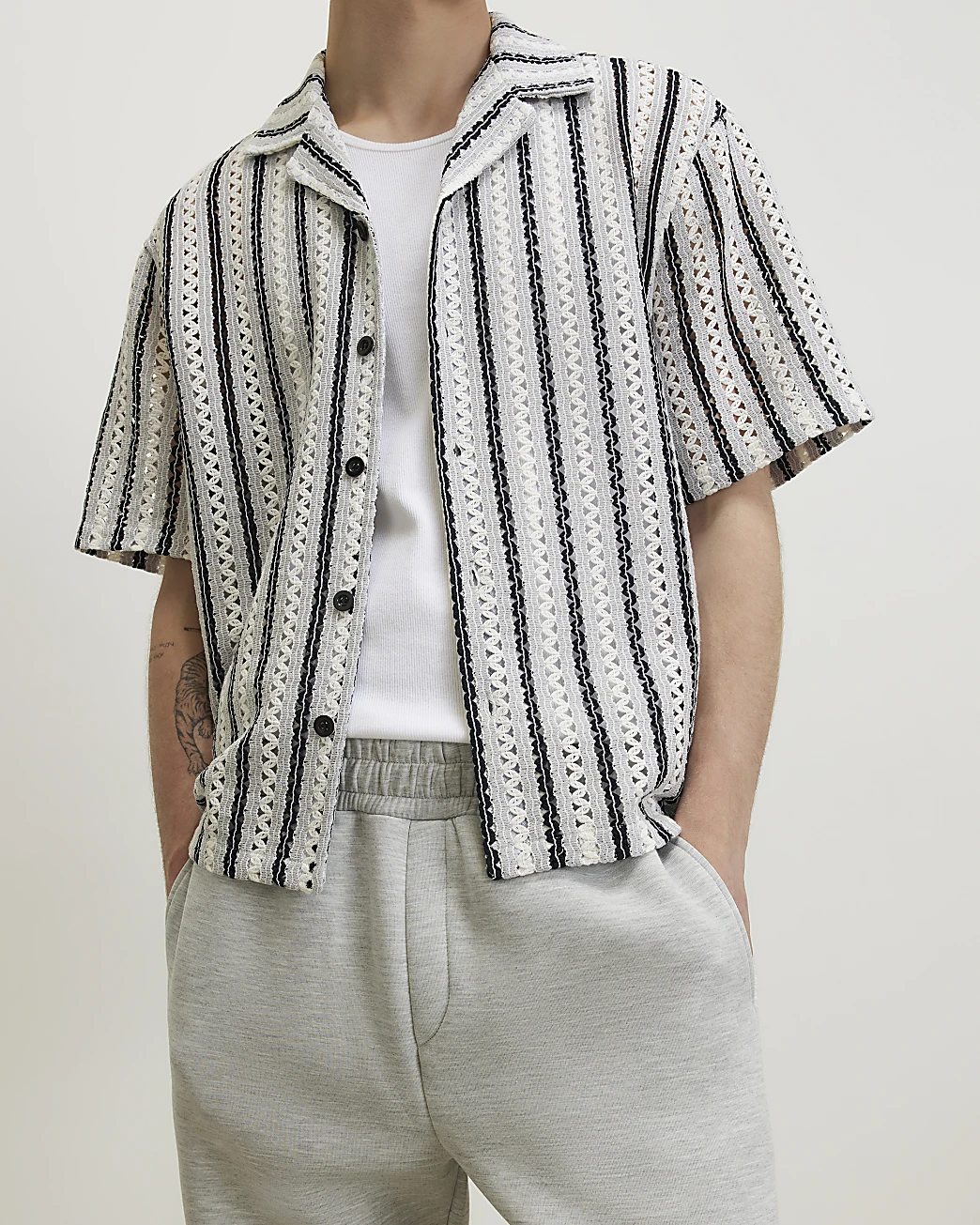 Navy Crochet Stripe Shirt