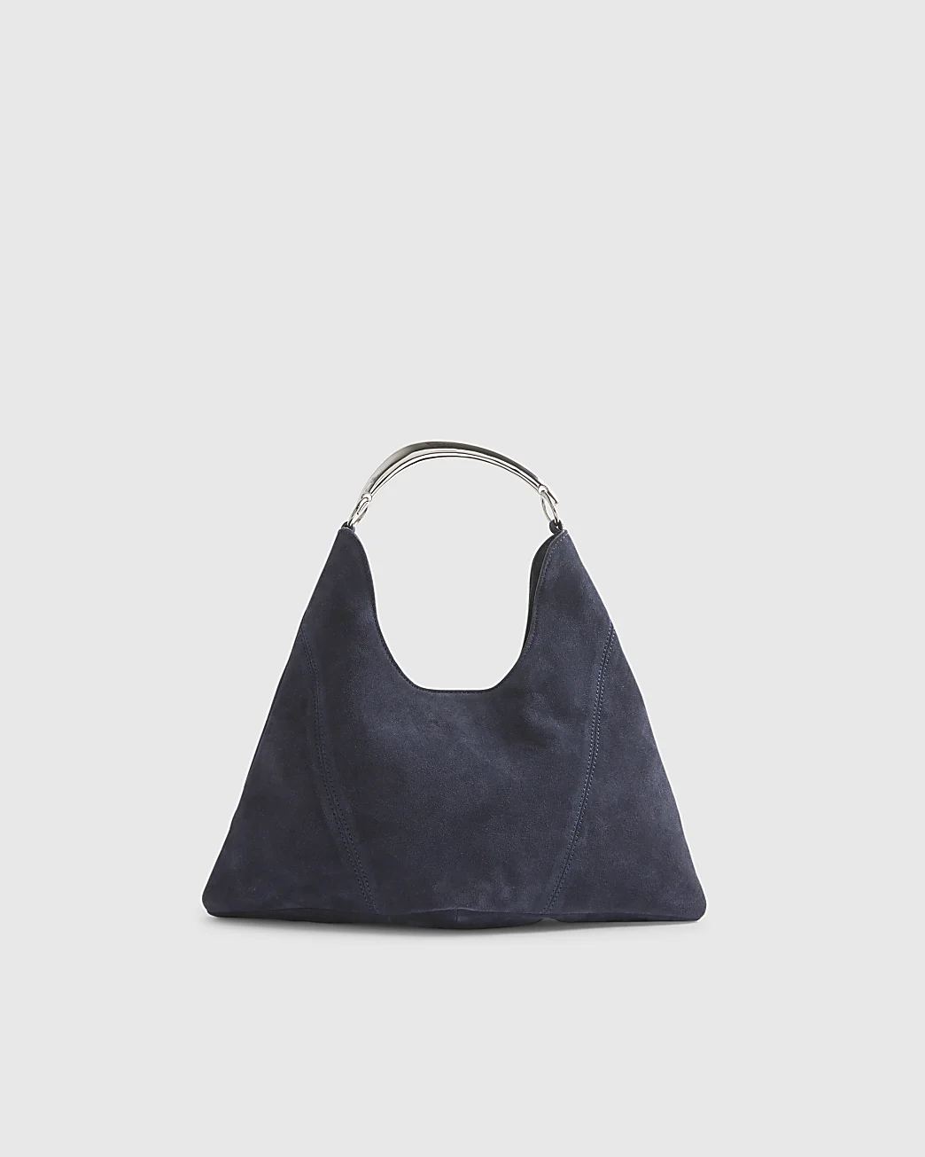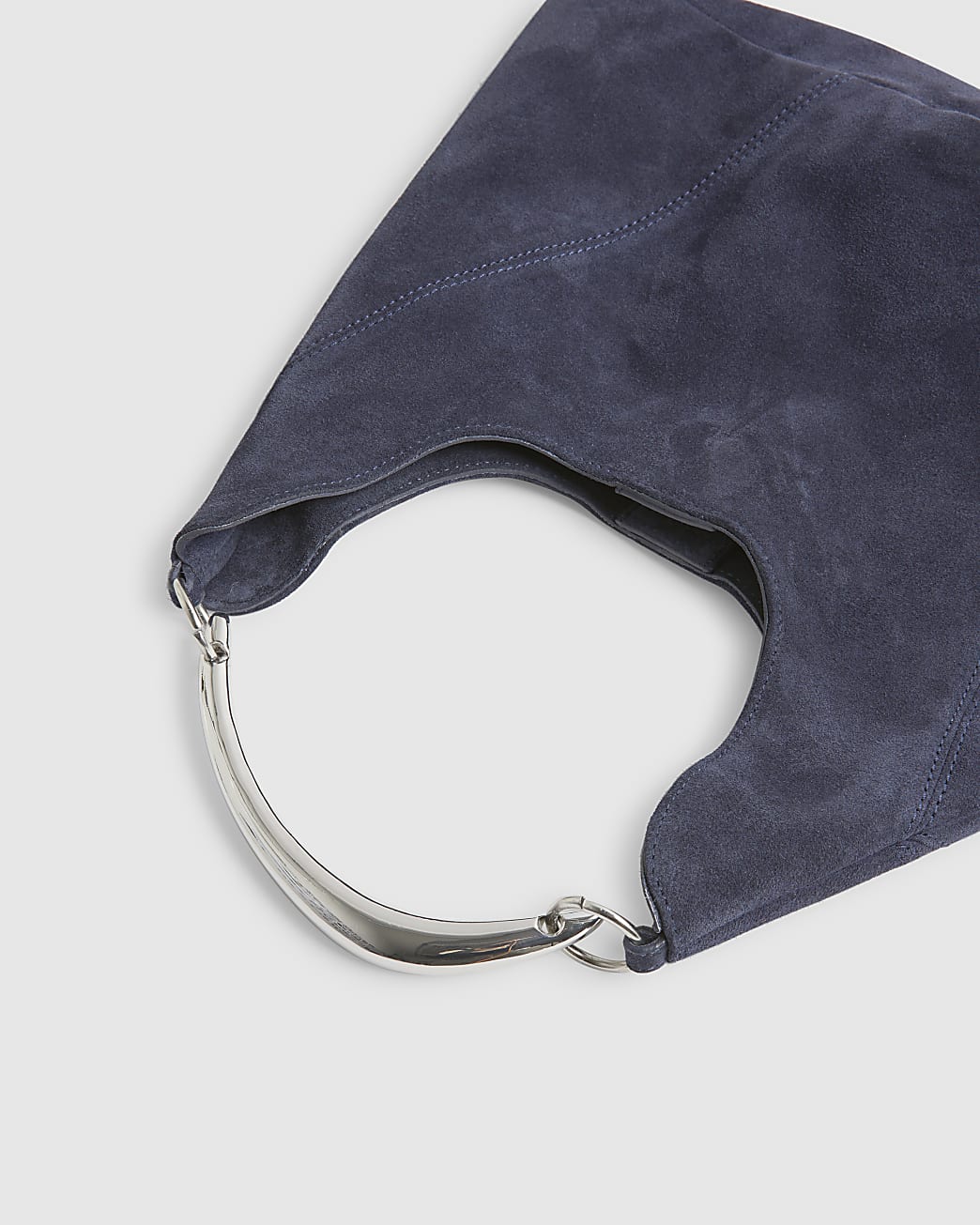Navy Suede Metal Handle Slouch Shoulder Bag