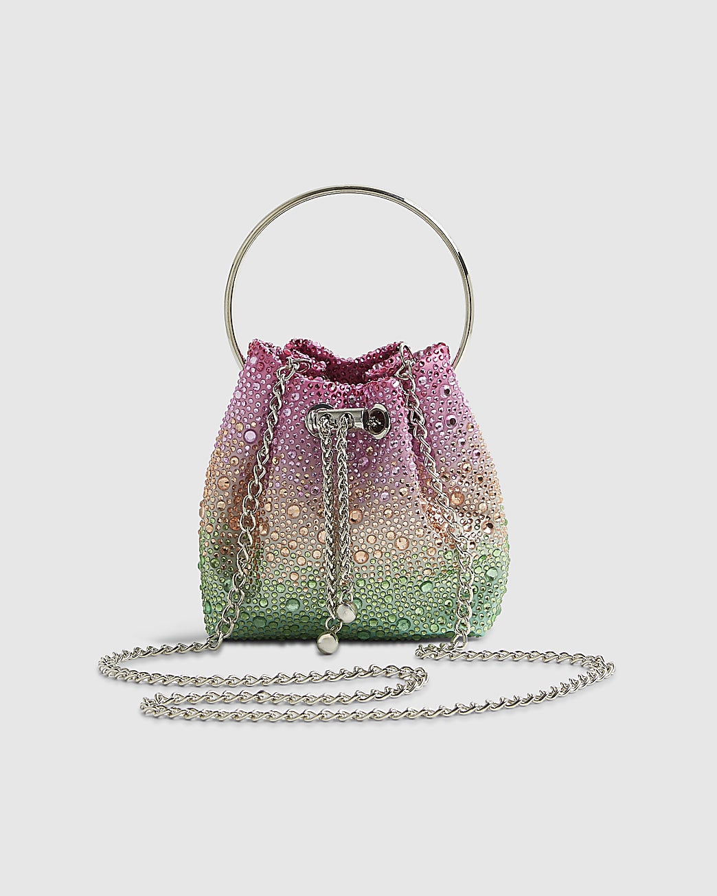 Be the first to review “Pink Ombre Gem Metal Handle Bucket Bag”