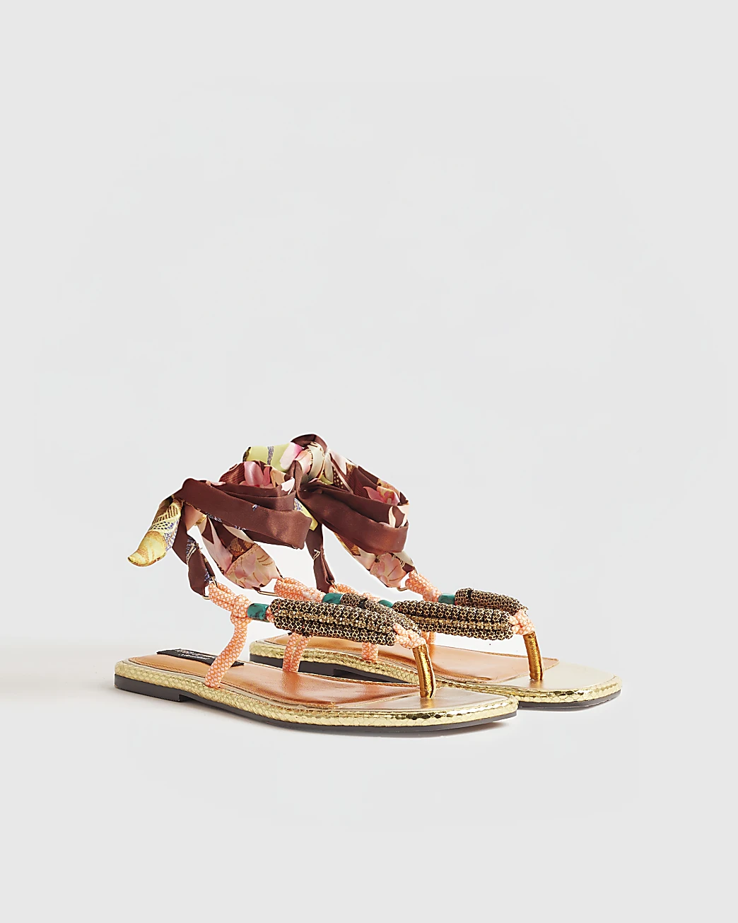 Add a playful yet elegant touch to your summer wardrobe with these Linglocker flat sandals. Designed with a modern square toe and delicate rope straps, they are finished with subtle diamante detailing for a hint of sparkle. The scarf tie fastening offers a unique, adjustable fit, while the flat sole ensures effortless all-day comfort.