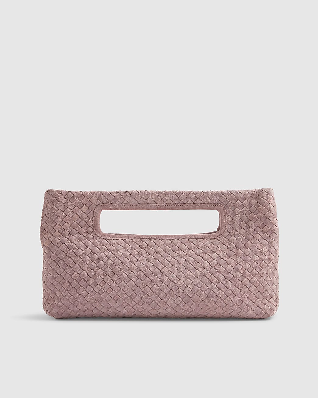 Pink Suede Woven Clutch Bag