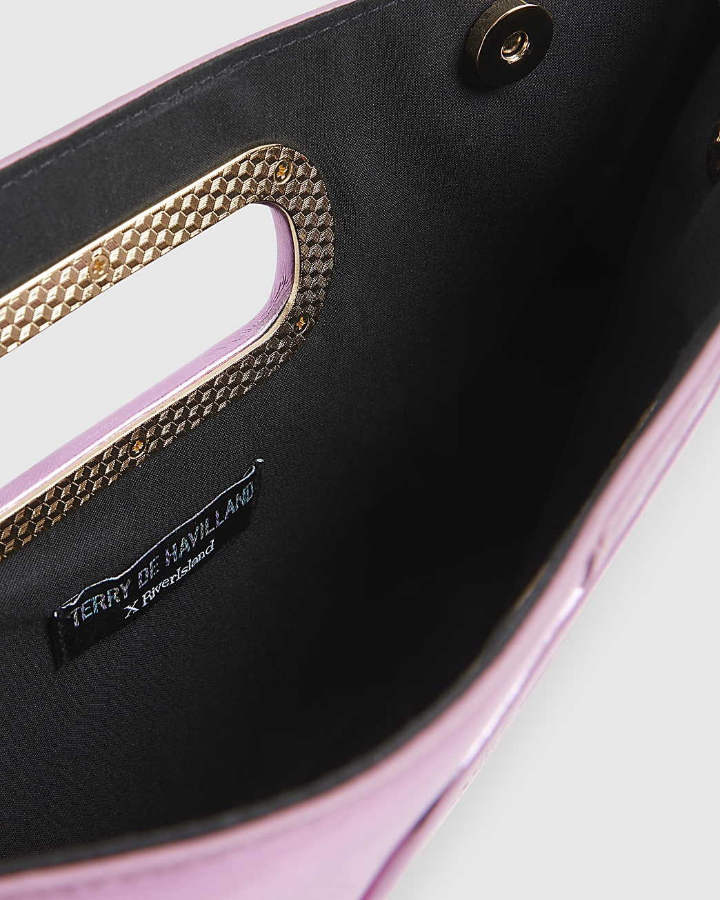 The Linglocker Pink Swirl Panel Clutch Bag is a striking statement accessory, designed with bold metallic accents and a fluid swirl pattern for a glamorous finish.