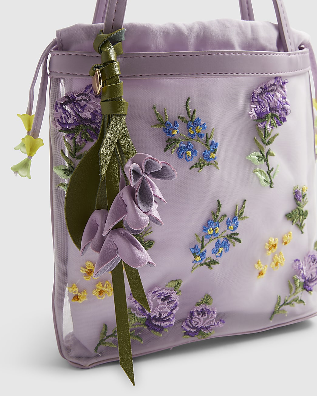 The Linglocker Purple Mesh Embroidered Mini Tote Bag is a beautifully romantic accessory, inspired by vintage florals and delicate garden party elegance. Designed with intricate detailing, it blends timeless charm with a modern silhouette.