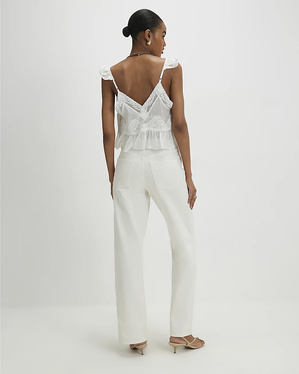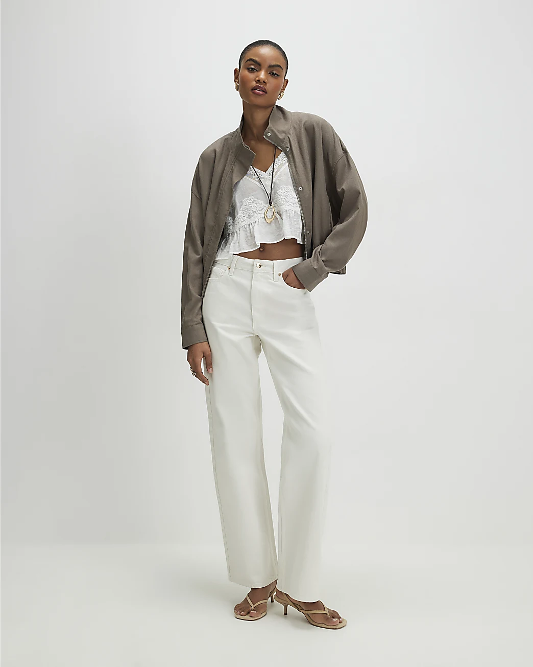 The Linglocker White High Waisted Relaxed Straight Jeans are a timeless wardrobe essential with a clean, modern finish. Crafted from durable cotton denim, they feature a flattering high-waisted fit that defines the silhouette. The relaxed straight leg offers effortless versatility, while classic details such as belt loops and functional pockets complete the look. Finished with a zip and button fastening for a secure fit.