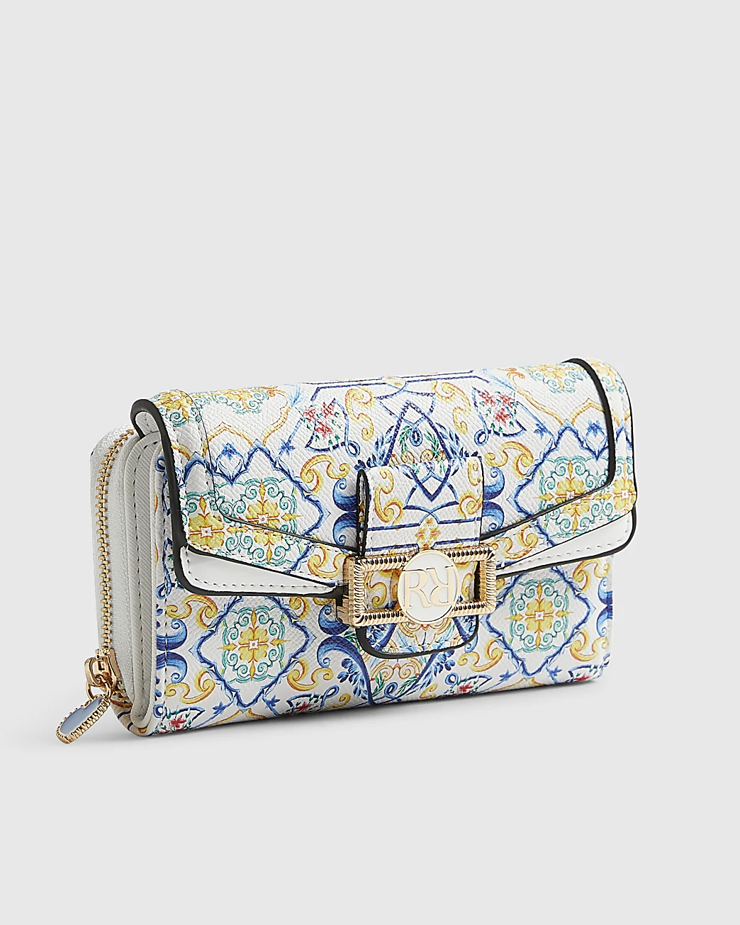 The Linglocker White Tile Print Flap Purse is a stylish everyday accessory featuring elegant detailing and a compact design, perfect for keeping your essentials organised.